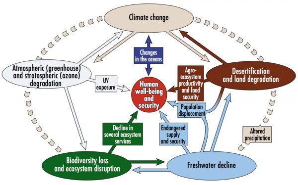 Global environmental change, which includes climate change, stratospheric ozone depletion, loss of biodiversity, changes in hydrological processes and the supply of freshwater, land degradation and stresses on food-producing systems significantly affects human health and well-being. Governments are recognizing that natural resources are not inexhaustible and that the environment can no longer provide a reliable base for development if we continue to operate in a “business-as-usual” mode.