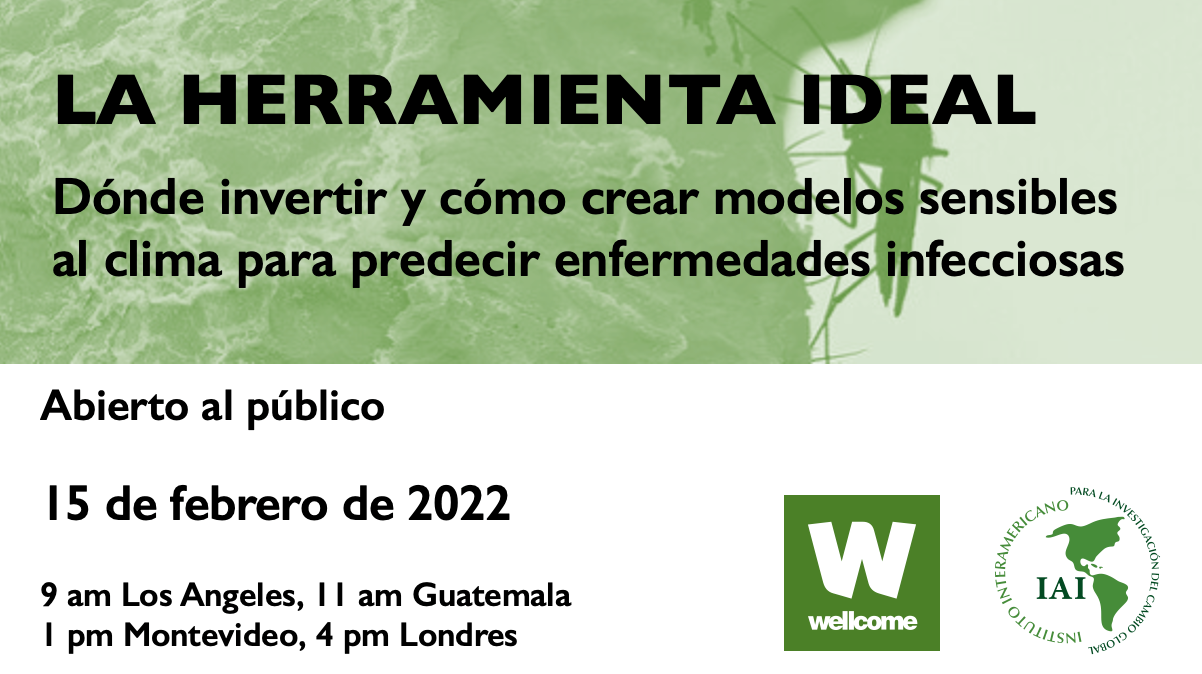 Les invitamos a unirse a Anna Stewart Ibarra (IAI), Sadie Ryan (University of Florida) y Bilal Mateen y Madeleine Thomson de Wellcome Trust en su discusión de los puntos más sobresalientes del reciente informe "Landscape mapping of software tools for climate-sensitive infectious disease modelling" y las oportunidades futuras para la región de las Américas.