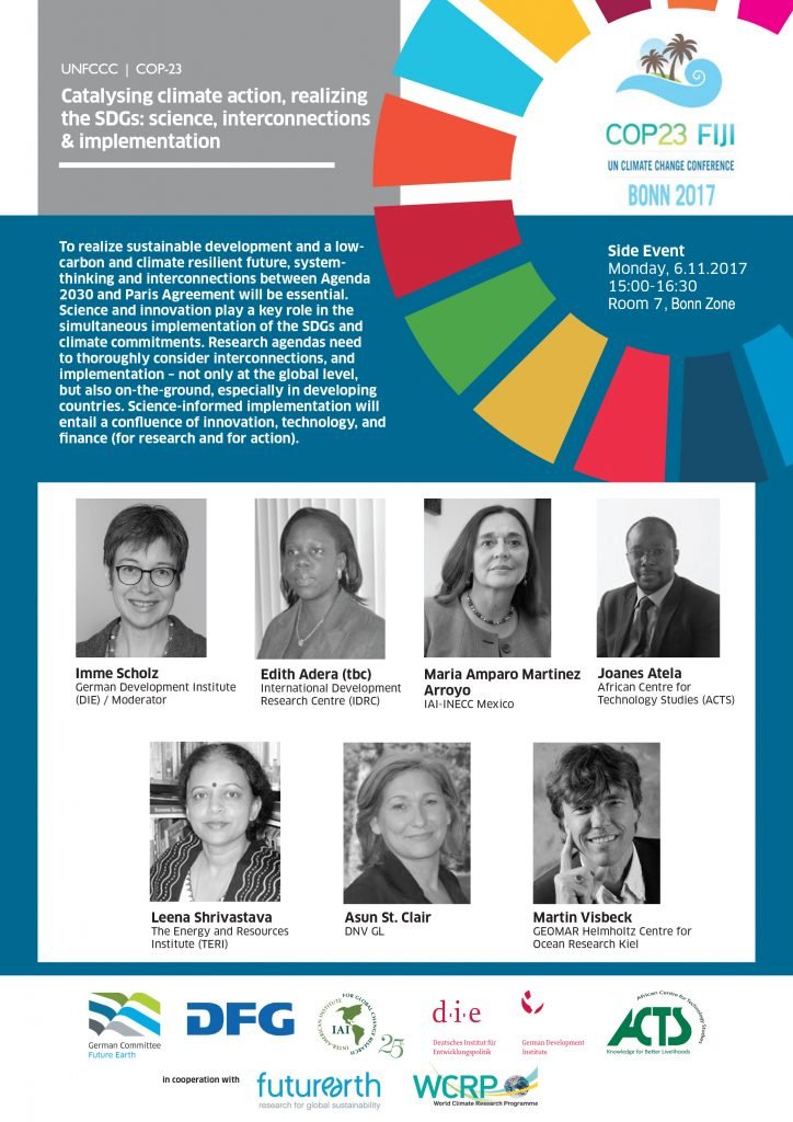 La ciencia y la innovación juegan un papel clave en la implementación simultánea de los ODS y los compromisos climáticos. Es necesario que las agendas de investigación tomen en consideración las interconexiones y la implementación, no solo a nivel mundial, sino también en el terreno, particularmente en los países en desarrollo. La implementación basada en información científica conllevará la innovación, la tecnología y las finanzas (para la investigación y para la acción).