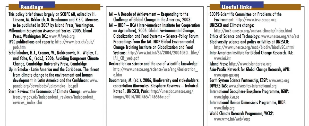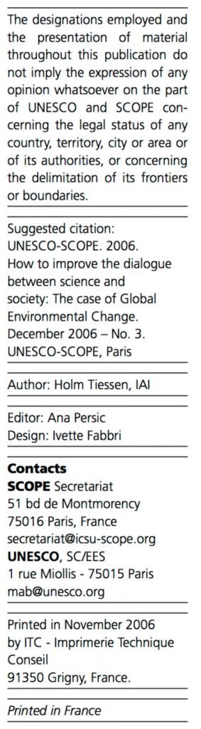 It is critical to construct the dialogue between science, policy and society in order to provide educated and effective responses to GEC. An analysis and understanding of the science-policy interface is needed to guide this process.