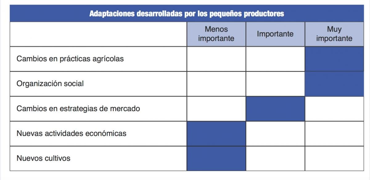 2. Organización social, necesaria para que los pequeños productores puedan acceder a nuevos mercados, nuevas tecnologías o programas de apoyo, o para ser parte de una red local de apoyo para recuperarse o responder de una mejor forma a los cambios globales.
